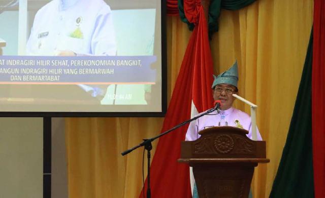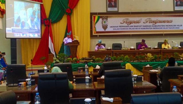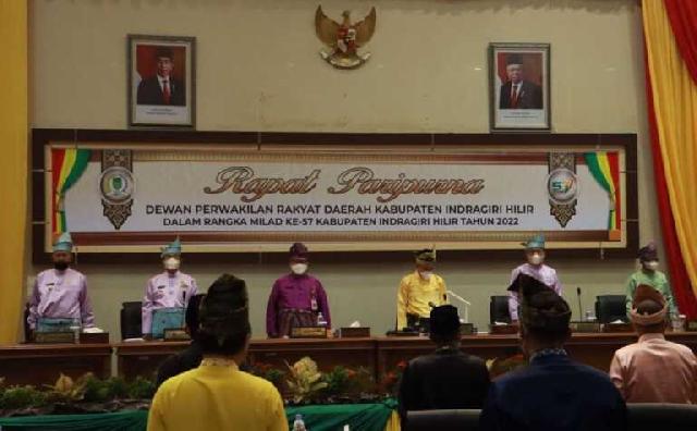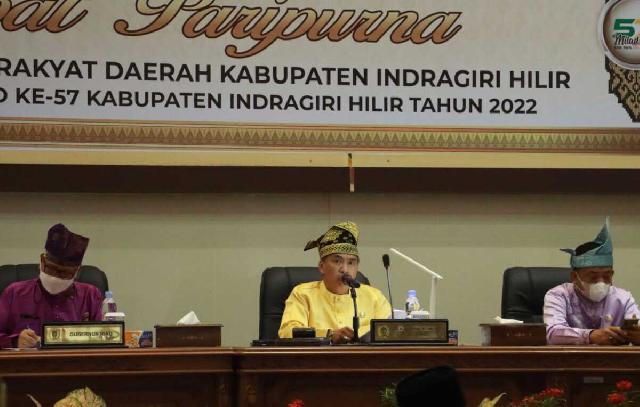 TEMBILAHAN (MR) - Ketua Dewan Perwakilan Rakyat Daerah (DPRD) Kabupaten Indragiri Hilir Dr H Ferryandi ST MT MM pimpin rapat paripurna yang bersempena dengan Milad Inhil ke-57, di Gedung DPRD Jalan Soebrantas Tembilahan, Selasa (14/6/2022).