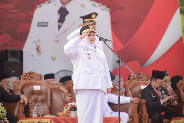 Bupati Bengkalis, Kasmarni saat membacakan amanat