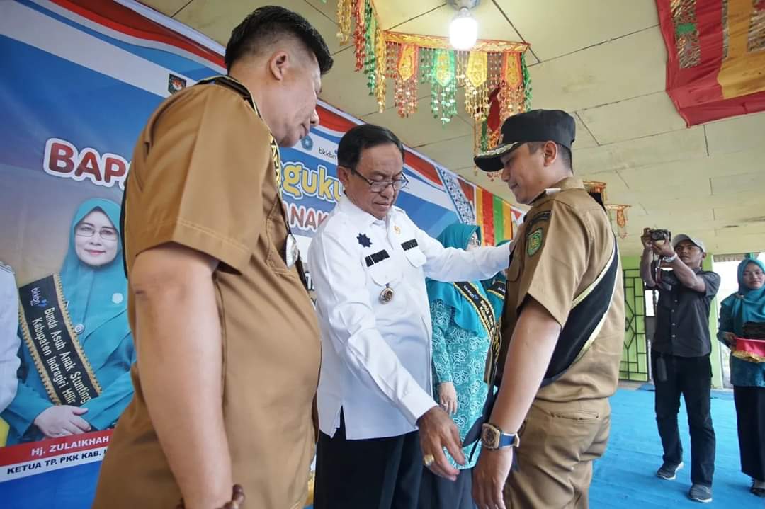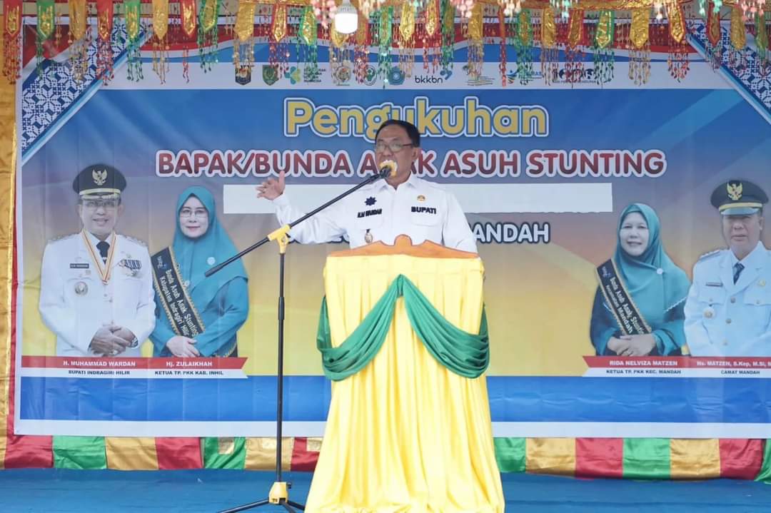 Monitorriau.com - Bupati Indragiri Hilir H. M. Wardan bersama Ketua TP. PKK Kab. Inhil yang juga bunda asuh anak stunting Kab. Inhil Hj. Zulaikhah Wardan mengukuhkan Bapak dan bunda asuh anak stunting kelurahan dan desa se Kecamatan Mandah, Kamis (09/03/2023).
