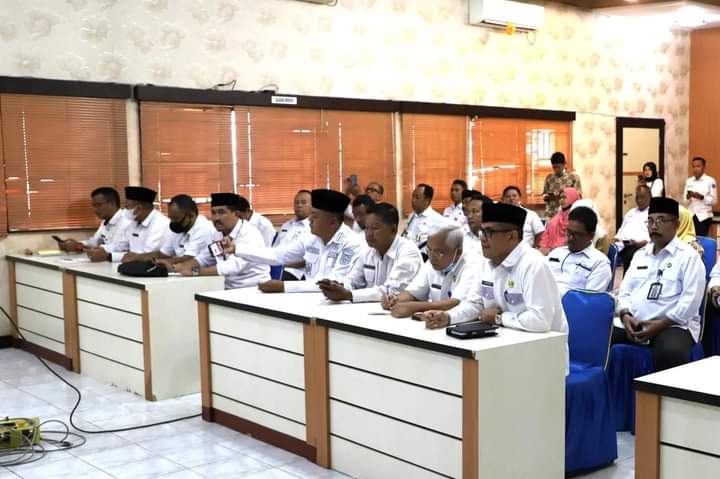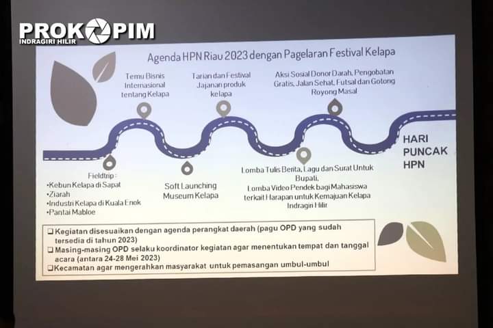 TEMBILAHAN (MR) - Bupati Indragiri Hilir HM. Wardan memimpin rapat awal persiapan Hari Pers Nasional Tahun 2023 Tingkat Provinsi Riau yang disejalankan dengan pagelaran festival kelapa, Rabu (05/04/2023).