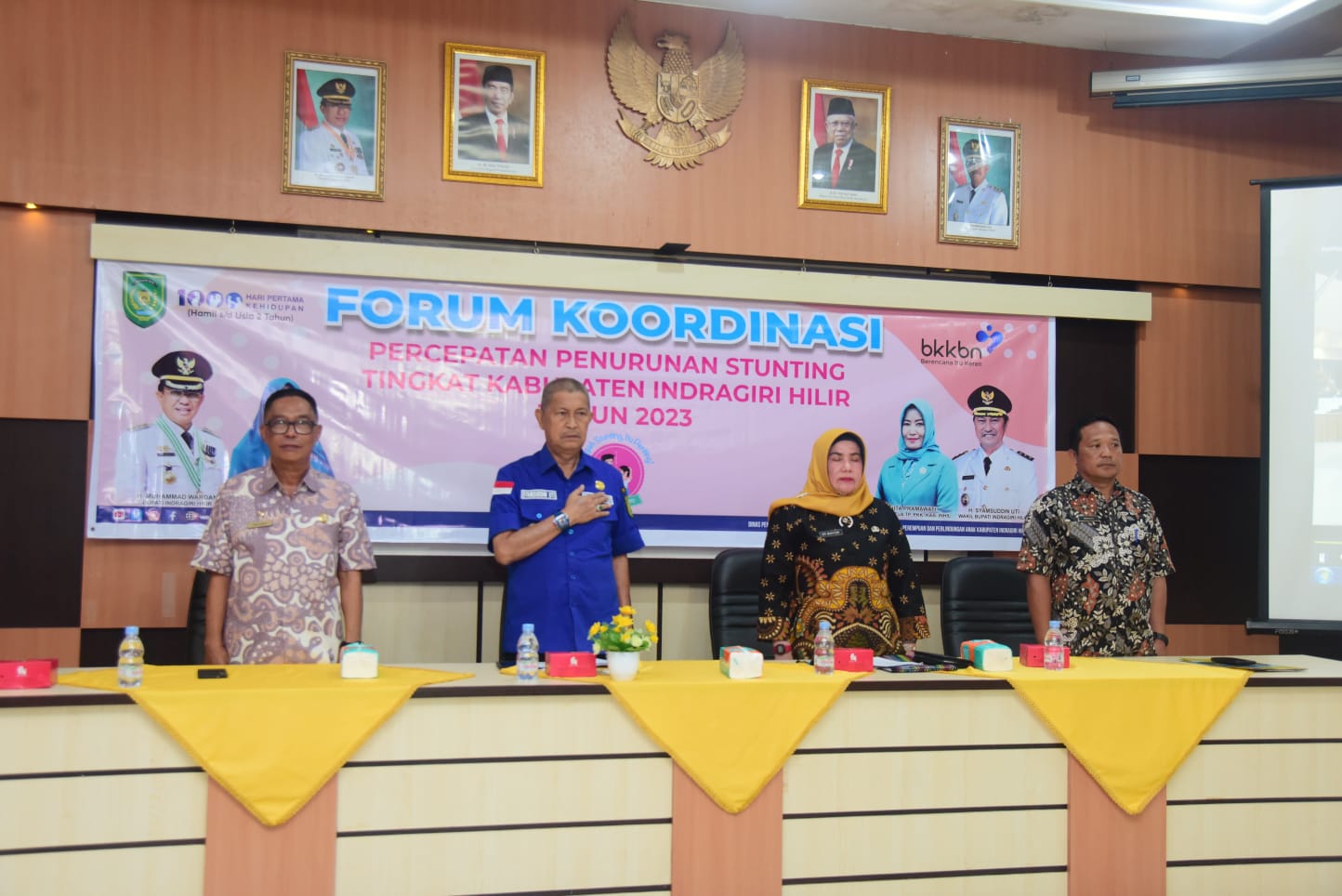 Terakhir dalam rangka penurunan angka saat ini Rapat Forum koordinasi percepatan penurunan stunting yang dilaksanakan selama 1 hari di Aula Bappeda dengan peserta anggota tim percepatan penurunan stunting Kabupaten Indragiri Hilir, Ketua TPPS Kecamatan se Kabupaten Indragiri.