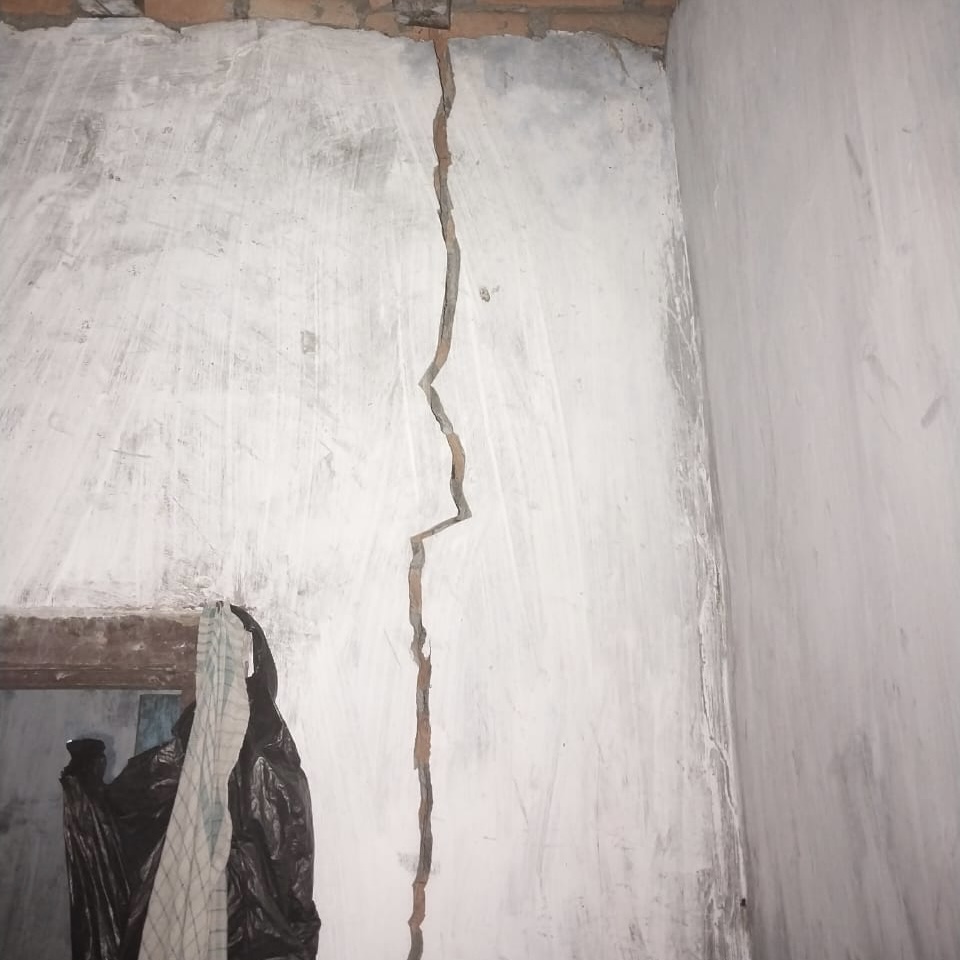 Terlihat di lokasi Kamis, (26/10) retakan dengan ukuran bervariatif yang berdampak sangat buruk dikhawatirkan ambruk, karena lokasi bangunan yang retak berada sekitar radius 1,5/2 kilometer dari tambang batu bara.