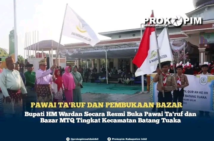 TEMBILAHAN (MR) - Bupati Indragiri Hilir, Drs. HM Wardan MP, didampingi Ketua TP PKK Inhil, Hj. Zulaikhah Wardan membuka secara resmi bazar dan pawai ta'aruf MTQ tingkat kecamatan Batang Tuaka, kamis (27/07/2023).