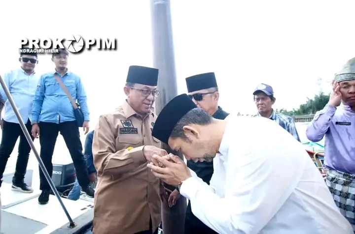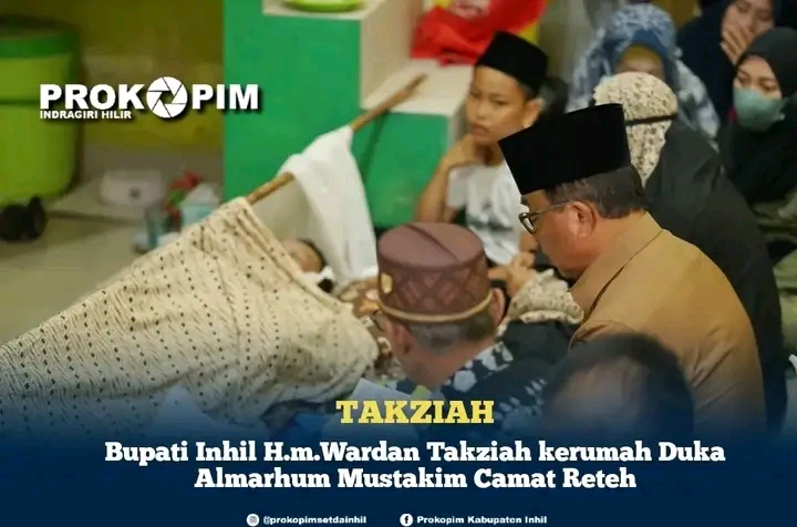 TEMBILAHAN (MR) - Kamis (03/08/2023) Bupati Inhil H.M.Wardan disela kunjungan kerjanya ke Kecamatan Sungai Bantang terlebih dahulu Takziah ke Rumah Duka Almarhum Mustakin, SKM (Camat Reteh) di Pulau Kijang Kecamatan Reteh.
