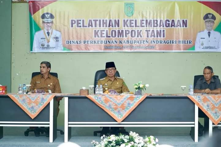 TEMBILAHAN (MR) - Bupati Indragiri Hilir HM. Wardan membuka pelatihan kelembagaan kelompok tani yang dilaksanakan di aula salah satu hotel di Kota Tembilahan, Selasa (26/09/2023).