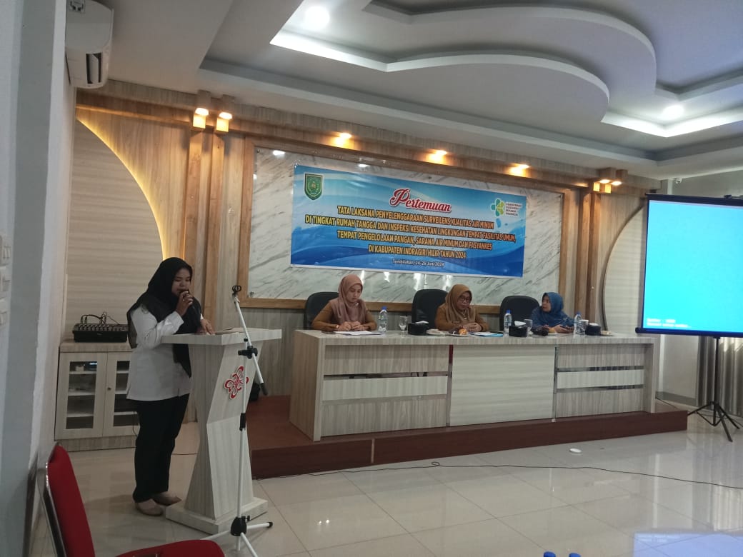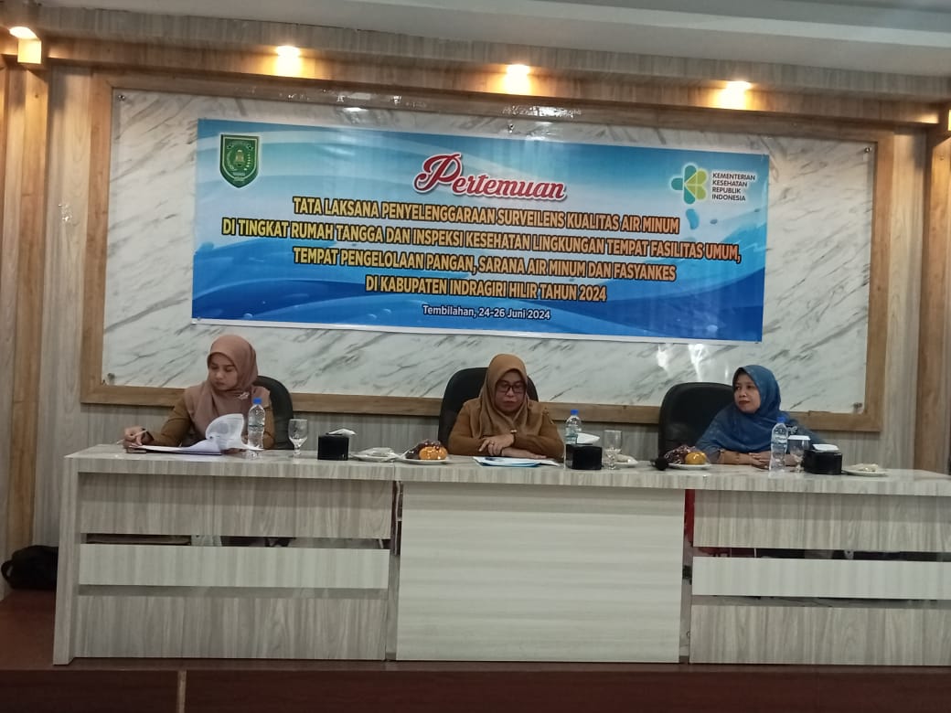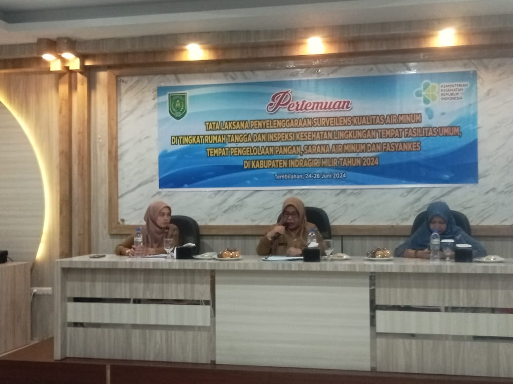 INHIL (MR) - Dinas Kesehatan Kabupaten Indragiri Hilir menggelar pertemuan tatalaksana penyelenggaraan surveileans kualitas air minum ditingkat rumah tangga dan inspeksi kesehatan lingkungan tempat fasilitas umum, tempat pengelolaan pangan, sarana air minum dan Fasyankes di Kabupaten Indragiri Hilir, Senin 24 Juni 2024.