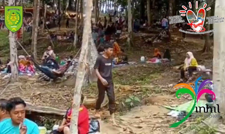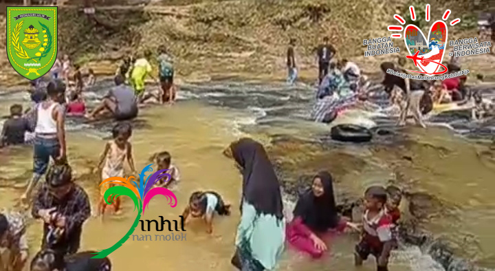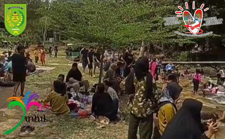 TEMBILAHAN (MR) - Wisatawan beramai-ramai berlibur ke objek Wisata Air Terjun Tembulun Rusa saat hari Raya Idul Adha 1445 H/2024 M.