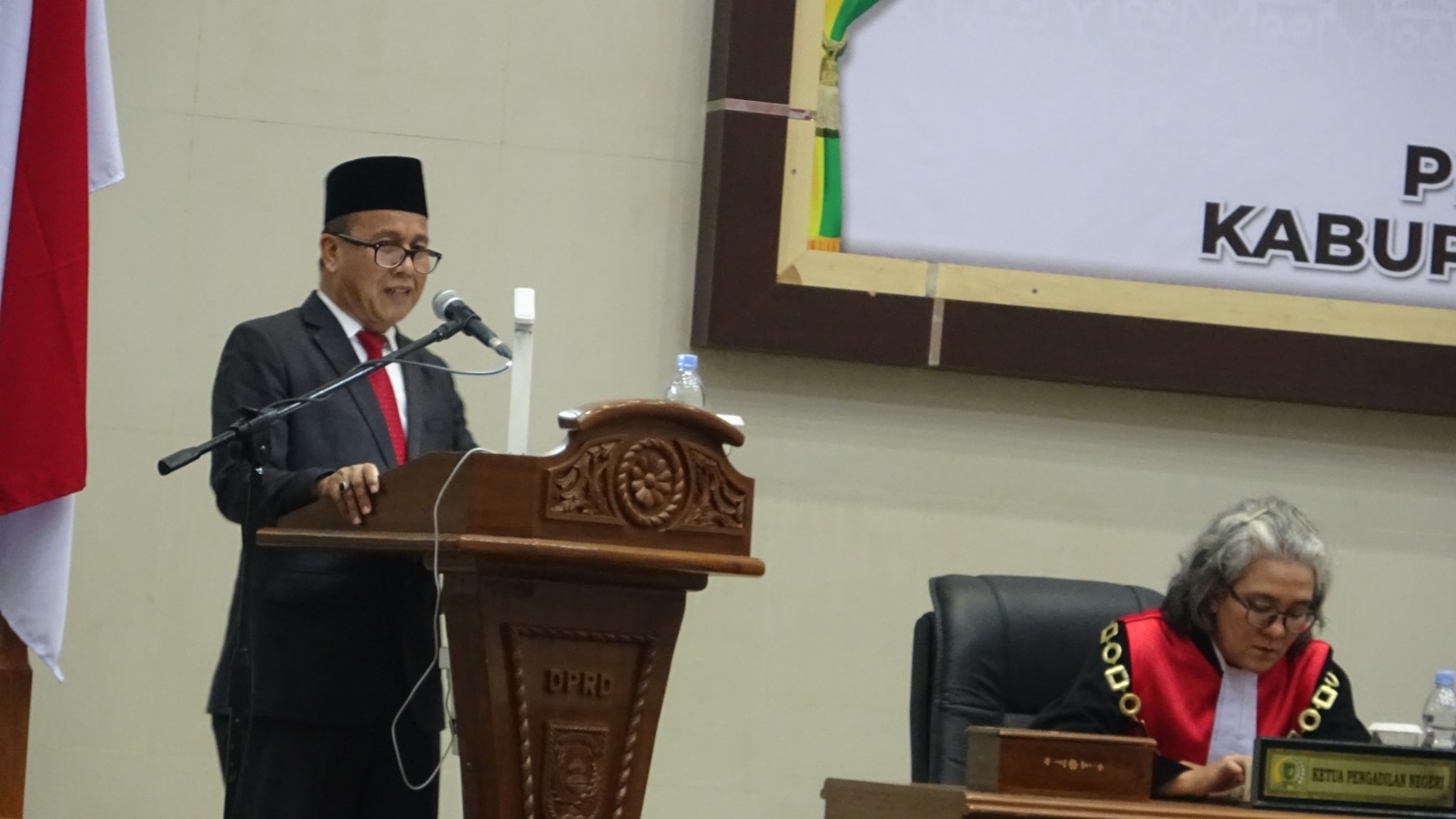 TEMBILAHAN (MR) - Pj Bupati Indragiri Hilir (Inhil), H Erisman Yahya menghadiri pelantikan 45 Anggota Dewan Perwakilan Rakyat Daerah (DPRD) Indragiri Hilir (Inhil) terpilih untuk periode 2024-2029.