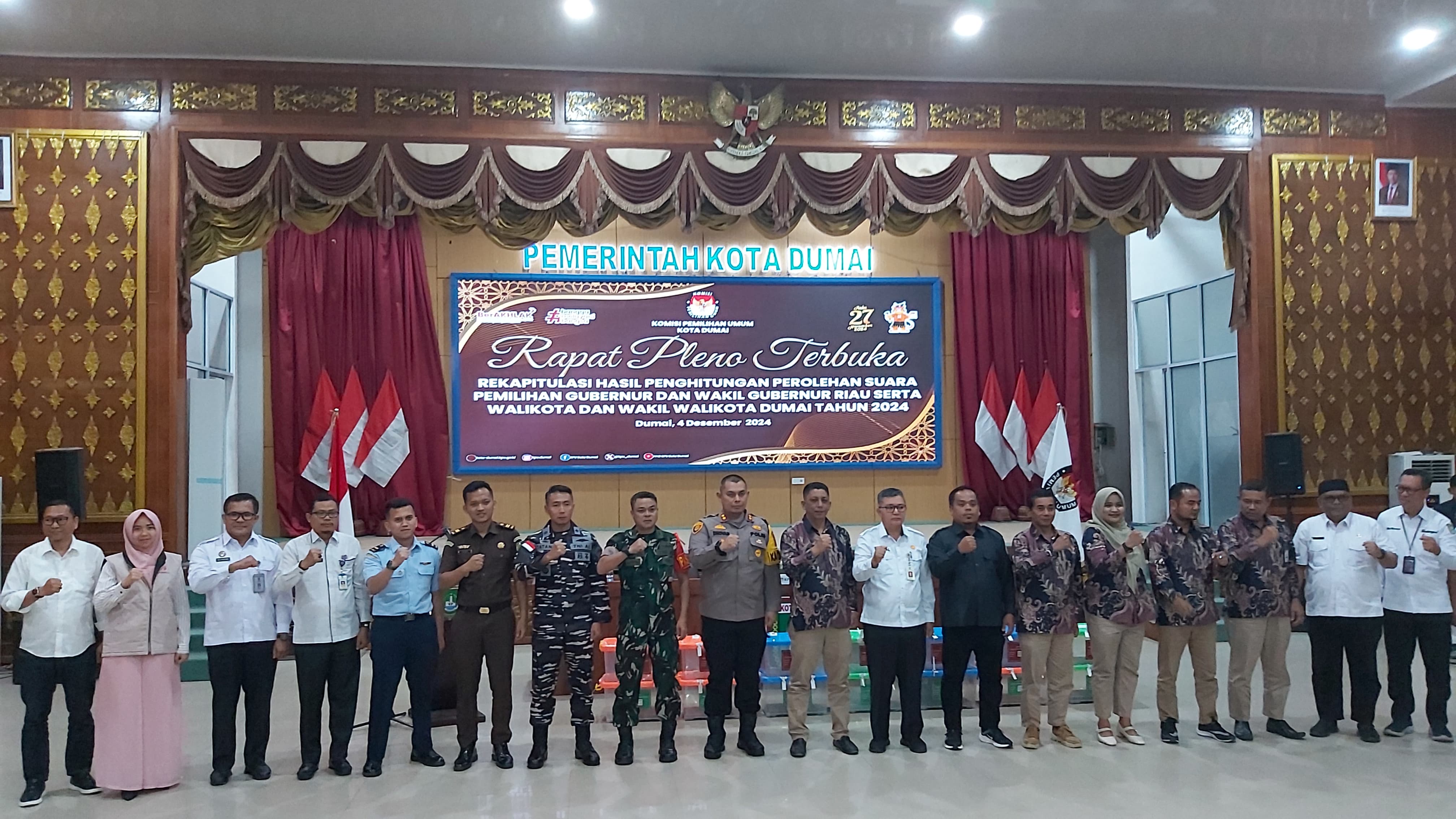 Foto Bersama saat Rapat Pleno Terbuka Rekapitulasi Hasil Penghitungan Suara Pilkada Serentak tahun 2024, Kota Dumai.