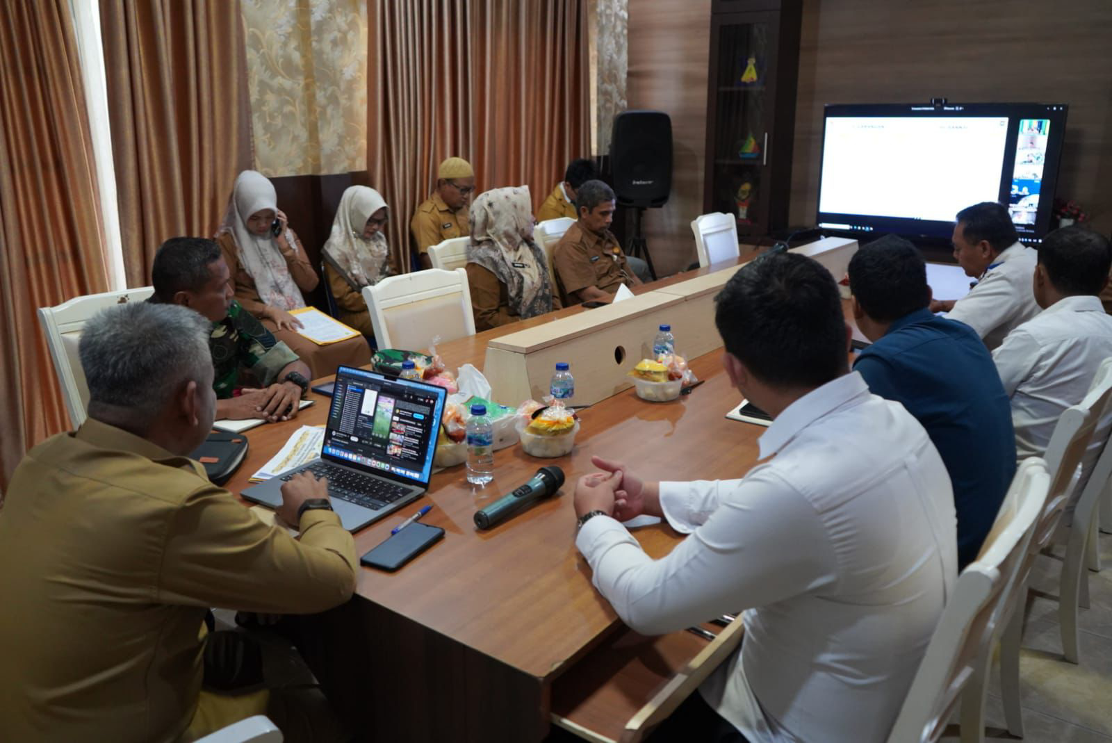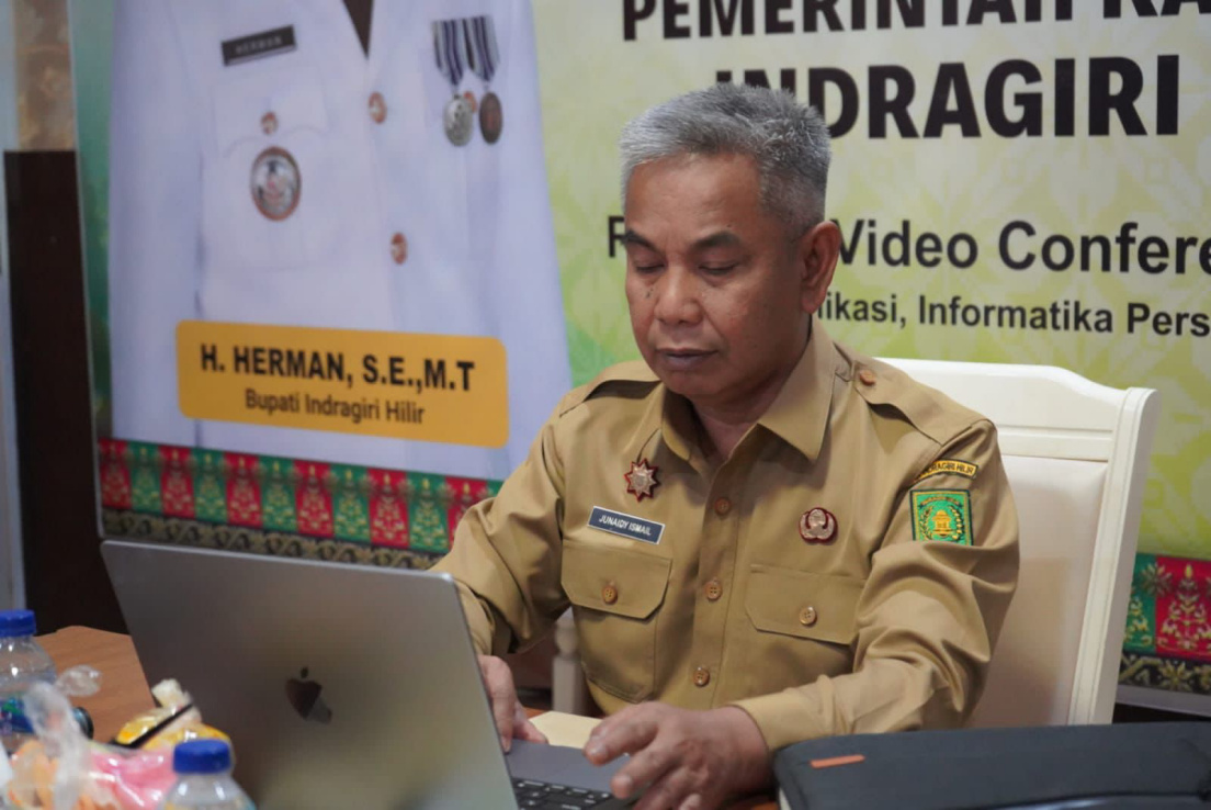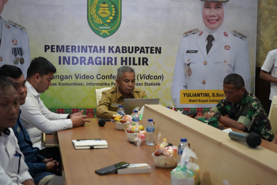TEMBILAHAN (MR) - Bupati Indragiri Hilir (Inhil) H. Herman, yang diwakili oleh Asisten II Sekretariat Daerah (Setda) Inhil Junaidi Ismail, mengikuti Rapat Koordinasi (Rakor) Pengendalian Inflasi Daerah secara virtual bersama Kementerian Dalam Negeri (Kemendagri), Senin (19/05/2025).