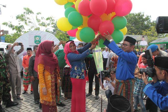 Ketua TP PKK Hj, Misnarni melepas balon pada pembukaan bazaar MTQ