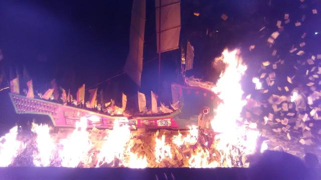 Ternyata di Kota Batam Provinsi Kepulauan Riau (Kepri) ada ritual serupa. Ritual bakar tongkang yang dilakukan di Vihara Cetya Upo Sakadharma.