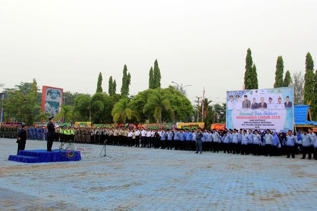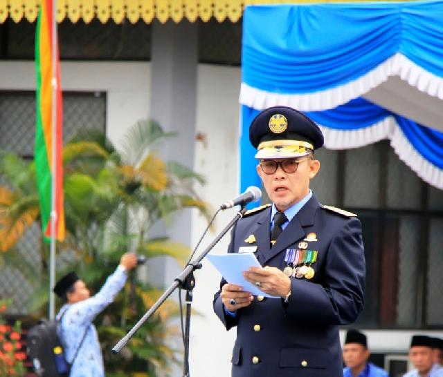 MONITORRIAU.COM - Apel peringatan Hari Perhubungan Nasional (Harhubnas) 2018 yang berlangsung di Kantor Bersama, Jalan HR Soebrantas pada Senin (17/09/2018) dipimpin Walikota Dumai Drs. H. Zulkifli As.