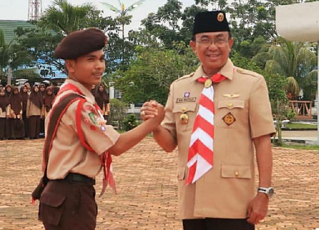 Bupati Inhil salam komando kepada salah seorang anggota Pramuka
