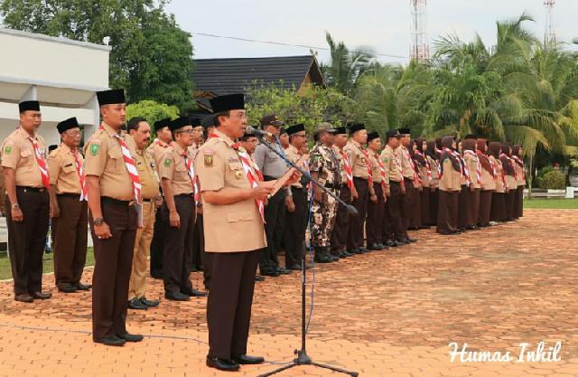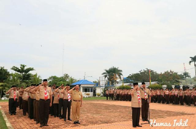 Bupati Pimpin Apel Gelar Senja Kwarcab 04.02 Gerakan Pramuka Kabupaten Inhil