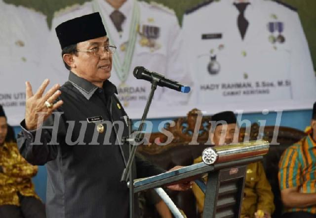 TEMBILAHAN (MR) - Bupati Kabupaten Inhil, HM Wardan melantik Penjabat Kepala Desa Nyiur Permai, Kecamatan Keritang, Sabtu (2/2/2019), di GOR Mahkota Jaya Desa Seberang Pebenaan, Kecamatan Keritang.