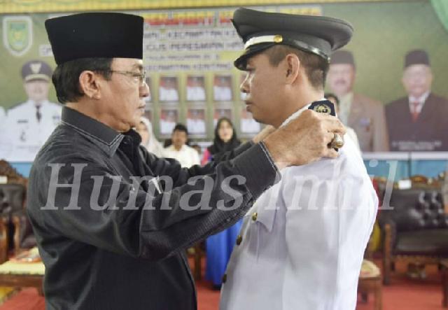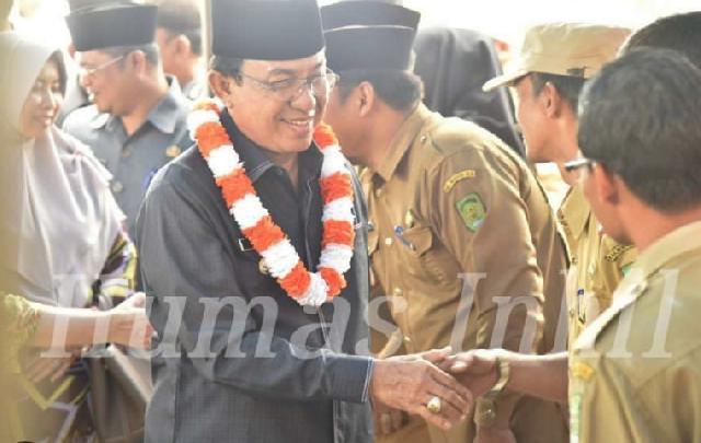 Bupati Inhil melakukan penyematan kepada Penjabat Kades Nyiur Permai