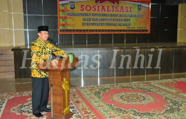 TEMBILAHAN (MR) - Bupati Kabupaten Inhil, HM Wardan menghadiri sosialisasi pengamanan anggaran dana desa tahun 2019 di gedung Engku Kelana, Tembilahan, Jum'at (8/2/2019) pagi.