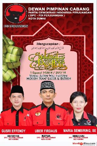 Dewan Pimpinan Cabang Partai Demokrasi Indonesia Perjuangan (DPC - PDI PERJUANGAN) Kota Dumai Mengucapkan Selamat Hari Raya Idul Fitri 1438 H/2017 M, Minal Aidin Wal Faidzin Mohon Maaf Lahir & Bathin
