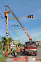Dishub Dumai Pasang Empat Warning Light Solar Cell