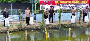 Bersama Kapolres Labuhanbatu, Lurah Aek Paing Hadiri Penaburan Benih Ikan Lele