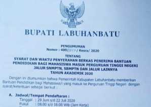 Pemkab Labuhanbatu Berikan Beasiswa Bagi Mahasiswa yang Masuk PTN, Ini Syaratnya
