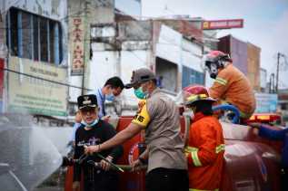 Cegah Virus Covid-19, Pemko Bersama Polres Dumai Lakukan Penyemprotan Disinfektan