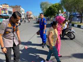 Bersama Dengan Istri, Kapolres Dumai Bantu Korban Kecelakaan