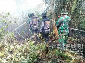 Babinsa Kelurahan Guntung Bersama Tim Gabungan Padamkan Karhutla di Jalan Sri Lestari
