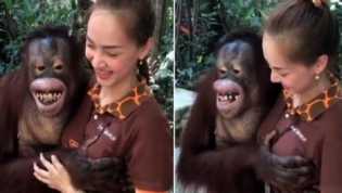Viral, Ning-Ning si Orangutan Meremas Payudara Penjaga Kebun Binatang