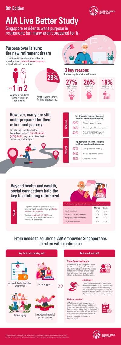 Singapore residents seek purpose, not just rest, but many unprepared for the journey: AIA Live Better Study
