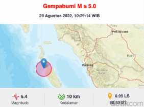 Dalam 5 Jam, Mentawai 2 Kali Diguncang Gempa Kekuatan di Atas M 5,0