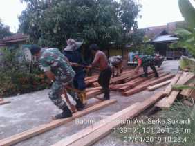 Babinsa Kodim 0320/Dumai Bangun Jembatan Swadaya Bersama Masyarakat