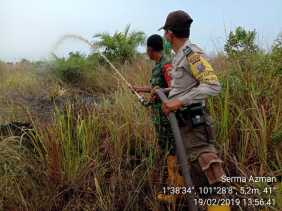 Babinsa Tanjung Palas Bersama Tim Karhutla Padamkan Lahan Terbakar di Jalan Batu Bintang