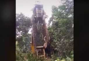 Heboh Ular Raksasa Diangkat Alat Berat Bikin Merinding