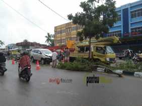 Diduga Ngantuk, Innova Asal Kisaran Panjat Trotoar dan Tabrak 5 Pohon Pelindung di Duri
