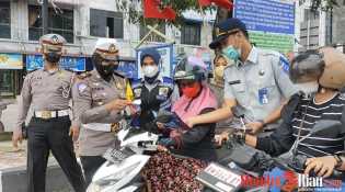 Sat Lantas Polres Dumai Bagikan Masker dan Sembako