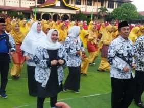 Latihan Tari dan Senam Massal di Mandau, Hj Kholijah Pantau Persiapan HUT PGRI Ke 77