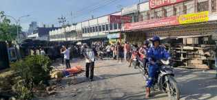 Lakalantas Didepan Swalayan Sariguna Duri, Satu Orang Terjepit Box Kontainer