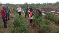 Danramil 01/Dumai Pimpin Korve Bersihkan dan Percantik Makoramil, Tanam Pohon Ekonomis