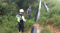 Sertu Roni Sandra dan Security Pertamina Melakukan Sosialisasi Keamana Jalur Pipa Minyak