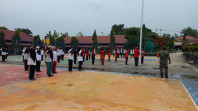 Semangat Mahasiswa KKN dan Pelajar Dilatih Upacara Bendera Oleh Babinsa
