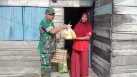 Sertu Sareh Serahkan Bantuan Sembako ke Masyarakat