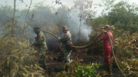 Tak Kenal Lelah, Sertu Aslim Lubis dan Tim Satgas Terus Lakukan Pendingin Lahan
