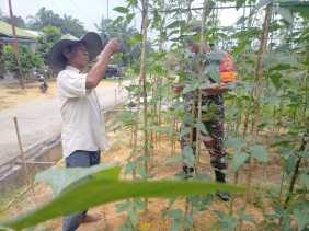 Dalam Rangka Program Ketahanan Pangan, Babinsa Dampingi Petani Kacang Panjang