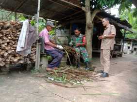 Babinsa Tinjau Masyarakat Penyerut Daun Sawit