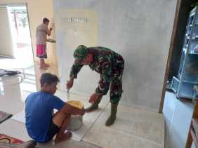 Babinsa dan Masyarakat Mengecat Musholla Al Amin