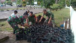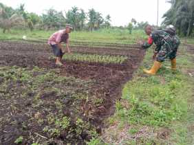 Anggota Koramil 02/BK Melaksanakan Giat Penanaman Sayur-sayuran di Makoramil