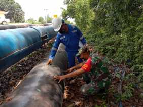 Babinsa Kelurahan Bukit Batrem Cek Kondisi Pipa PHR dan Lakukan Komsos