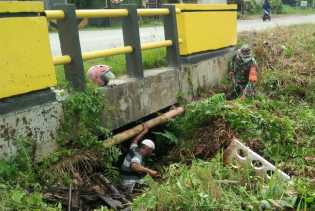 Bersama Warga dan Perangkat Kelurahan, Serda Cercakatno Bersihkan Aliran Sungai